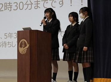 今回の集会では、秀峰祭実行委員会、体育祭実行委員会、生徒会執行部からそれぞれ連絡がありました。
