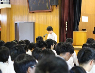 代表生徒(5年生)の言葉では、自らの進路実現に向けた2学期の抱負が語られました。先輩の強い決意を聞き、前記課程の生徒にとっても大きな刺激になったようです。