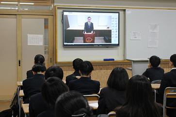 物事に取り組む中で、困難やトラブルに遭遇するかもしれないけれど、それに逃げることなく最善を尽くし、立ち向かっていくこと、思い込み、決めつけをすべて捨てて、前向きに積極的に取り組んでいくことが大事だといった話もあり、生徒たちは、キリッと引き締まった表情で話を聞いており、新しい年への決意がその背中からも伝わってくるようでした。