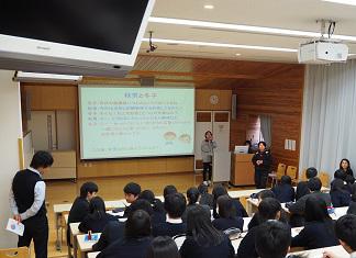 11月7日(木)6限に、4年生を対象に性教育講座が行われました。松本大学人間健康学部スポーツ健康学科から中島節子先生と学生3人が来校し、授業をしてくださいました。先生の講義にプラスして、学生が高校生に向けた身近なディスカッションテーマを設定し、一緒に考える機会を設けてくれました。身近に起こるデートDVについて考えながら、「相手を大事にしているからこそ、No!と言う」ことの大切さについて学びました。また、2011年3月11日に被災地で生まれた子どもの動画を見ることで、生命が誕生することのすばらしさを感じ、涙ぐむ生徒もいました。今後の人生設計を考えるうえで貴重な時間になりました。