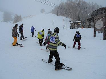 1日目は、レベル別にスキー5班、スノーボード3班に分かれ、インストラクターから実技指導を受けました。初級から上級まで、それぞれのレベルに応じて4時間の講習を受けました。雪が降る中、生徒たちは熱心に練習していました。