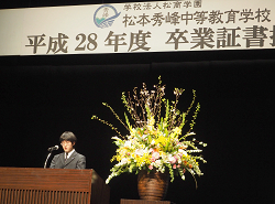 3月2日、まつもと市民芸術館にて平成28年度卒業証書授与式が行われました。本校にとっては2度目となる卒業式です。
