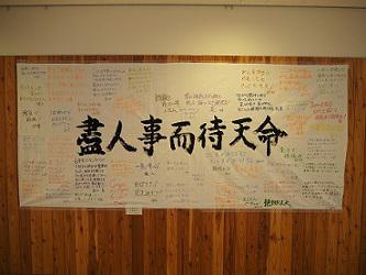 1月12日(水)、大学入学共通テストを目前に控え、今年も教職員一同からの「激励メッセージ」が職員室前に貼り出されました。「盡人事而待天命(人事を尽くして天命を待つ)」という言葉とともに、6年生に向けた、鼓舞激励の想いがしたためられています。
