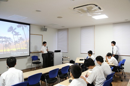 講演は病理医の病院での役割、実際の症例について、病理診断の今後の順に展開しまし、写真を交えて懇切丁寧に臨床検査部の様子を紹介していただきました。生徒たちは専門用語の出てくる少し難しい内容かと思われましたが、最後まで集中力を切らすことなく、真剣に聞き入っていました。