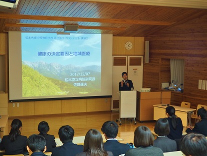 12月7日(木)、講師に松本協立病院 副院長 佐野達夫医師をお迎えし、「健康の決定要因と地域医療」をテーマに講演が行われました。