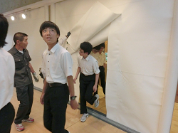 また今回は理科室からの火災発生を想定した訓練であったため、本館の中央部分を覆う防火シャッターも閉じられました。消火器、避難はしご、防火扉、排煙窓など、普段生活しているとあまり意識することのないものばかりですが、災害時にはこうしたものを適切に用いられるよう、日頃から心構えをしてほしいと思います。