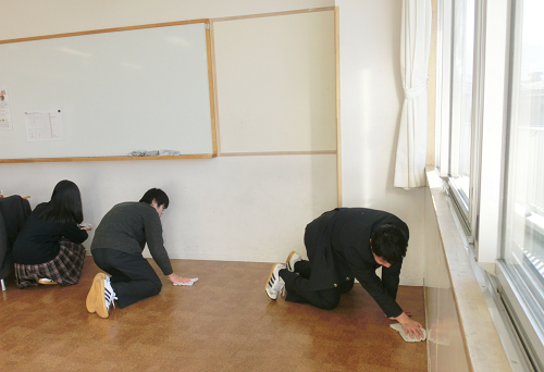 2017.01.06 学校行事 「新たな一年のはじまりを」 3学期始業式・清掃 Tweet 1月5日(木)、新年最初の登校日です。一段と寒くなった街を、生徒たちは元気に登校してきました。 この日の朝は始業式につづいて、休暇中に積もった汚れをはらうべく清掃が行われました。新たな一年、2017年最初の授業をきれいな教室で受けようということで、生徒たちは朝から黙々と取り組んでいました。 前の記事 次の記事