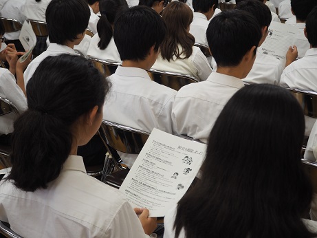 7月28日(金)、1・2学年を対象に外部の講師の方をお招きして、「メディア講座」を行いました。今回のテーマはインターネットリテラシーです。