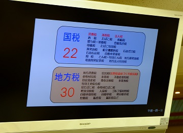 「どんな税があるのか、知っていますか」という税理士の方の質問に、「消費税です」と何名かの生徒が答えてくれました。「では、他にはどんな税がありますか」と聞かれると、少し悩んでしまいました。消費税は私たちに馴染み深い税の1つですが、それは50以上ある税のうちの1つに過ぎません。