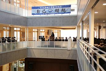 2月5日(火)の7時限目の時間に、生徒会役員選挙「立会演説会」が開かれました。今年も昨年と同様に、アトリウムでの演説会です。