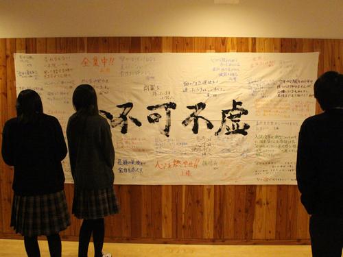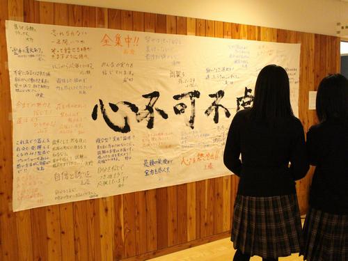 2021.01.15 学校行事 教職員からの激励メッセージ Tweet 大学入学共通テストを目前に控えた1月12日(火)、今年も教職員からの「激励メッセージ」が職員室入口に貼り出されました。 「心不可不虚(心を雑念で満たしてはならない)」という言葉を中央に配し、教職員一人ひとりが心を込めて寄せ書きをしました。 わたしたちのメッセージが励みとなり、希望進路実現に向けて全力を尽くす一助となってもらえればと思います。 教職員一同、朗報を待っています。 前の記事 次の記事