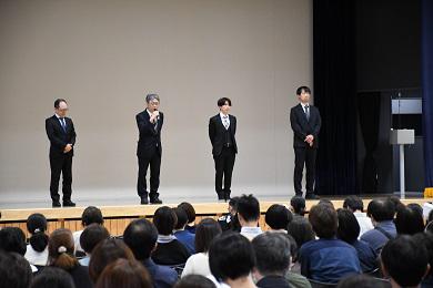 全体保護者会では、宗像学校長より、今年度の学校運営方針についてご説明したほか、教職員からも一人ひとりご挨拶申し上げました。