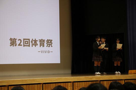 生徒会執行部の挨拶、生徒会紹介から始まり、まずは体育祭・秀峰祭(文化祭)・学術祭の各実行委員会の紹介がありました。
