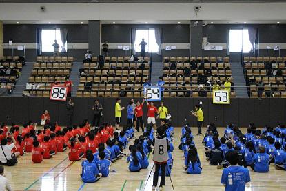 続いておこなわれたのが、今回の体育祭の目玉であり、1年生から5年生までがチームメイトとなり試合をする「バスケットボール」。
