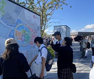 会場となる『おおさかATCグリーンエコプラザ』には、環境・SDGsに関する企業の取組事例も展示されており、生徒はそこから問題解決のヒントを得るだけではなく、自主的な探究学習につなげようと資料を深く読み込む生徒の姿も見られました。