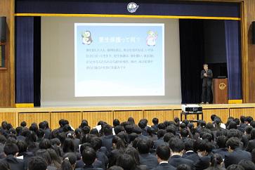 犯罪や非行といった過ちを犯してしまった人たちが更生し、社会の一員として再出発できるよう支える保護司の活動や、「誰もが安心して暮らせる地域をつくることの大切さ」について、丁寧にお話しいただきました。生徒は、人を支える仕事の意義を感じている様子でした。