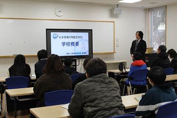 説明会終了後には、初めて本校の説明会に参加された方を対象に、本校の教育方針や特色ある教育活動、学校生活の様子などについて、学校概要を詳しくご説明しました。
