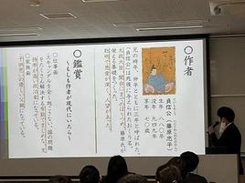 1学年の国語科では、「推し和歌」についてプレゼンテーションを行っています。 生徒たちは、小...