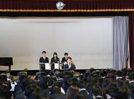 2月5日(火)の7時限目の時間に、生徒会役員選挙「立会演説会」が開かれました。今年も昨年と同様に、ア...