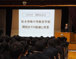 4月20日(木)、松本秀峰開校を記念して全校集会が講堂にて執り行われました。 2007年4月20日に...