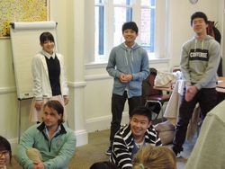 今日の研修は①「科学と環境の講演会」、②テーマ「Tell me about a pencil」についての個人スピーチ、の二つを軸に展開。朝の学年ミーティングでは、英語科教員から生徒へ「もっともっと積極的に」「器用に無難にこなすのではなく、目的を明確にもって」と取り組みへの叱咤激励があり、いい刺激になって新たな一日のスタートになりました。