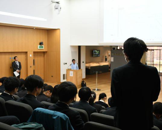 さらに、その思いを強くさせたのが、ケンブリッジに留学している学生の話を聞いたことです。現地で経済学を学ぶ学生の講演会では、現地での学びのほかに、入学の仕方や海外生活のポイント、さらには挑戦することの大切さなど、国内の大学にとどまることなく、広い視野を持って、生きていくことなどを感じさせていただきました。講演会後の質疑でも、具体的な内容が多く、今回の研修を機に、海外大学進学への気持ちが高まった生徒が多く出たようです。