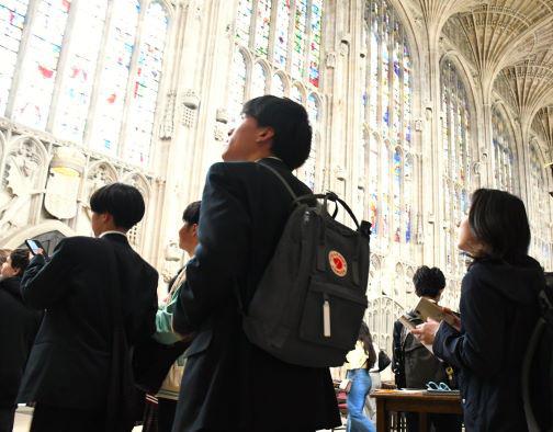 特に、世界最大級の扇形穹窿(かまぼこ型の形状を持つ天井構造)を誇るKing's College Chapelでは、その規模と雰囲気に生徒たちは圧倒されたようです。300年以上の歴史を持つパイプオルガンが奏でる音色や美しいステンドグラス、精巧に刻まれた紋章、それらが建物・空間という枠組みを超え1つの「世界」を作っているようでした。
