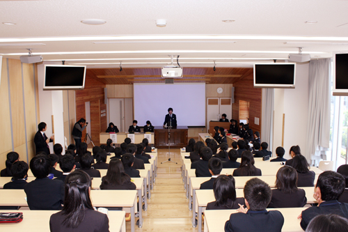 2010.05.24 委員会活動が本格化。第一回生徒総会も行われました! Tweet 代表、生活、保健、図書、文化広報、環境美化、文化祭実行の7つ委員会に加えて、生徒会も発足し、委員会活動が本格化しています。 廊下の掲示スペースには、文化広報委員会の壁新聞が掲示され、生徒達が新聞の周りを取り囲む姿も見られました。 また、生徒会の運営のもとで、代表委員が司会・進行を務め、第一回「生徒総会」が行われました。委員会の「活動方針」が各委員長より発表され、全ての生徒の賛同を得て、承認されました!! 今後も秀峰生が委員会に積極的に関わり、活動していく様子をお伝えしていきます。 前の記事 次の記事