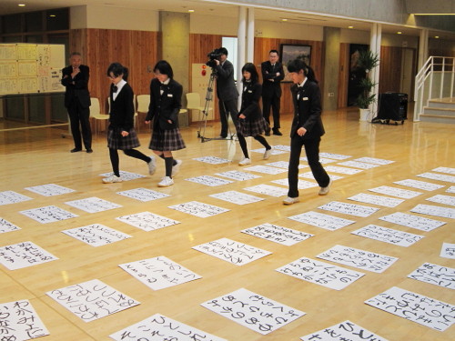 始業式後には書き初めと百人一首大会が行われ、冬休みの課題であった書道の練習と百人一首の暗誦の成果が試されました。