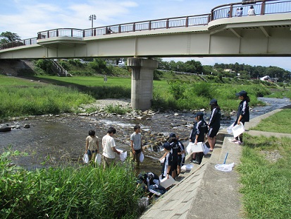 残暑厳しい8月下旬、科学部は本校から歩いてすぐの場所にある薄川で自然調査を行いました。
