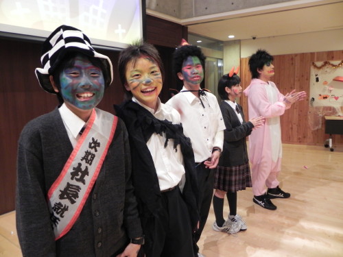 放課後の短い時間でしたが、フェイスペインティングのクラス対抗コンテストやジャック・オ・ランタン彫りなど、大学生たち約30人との交流を通して、楽しいひと時を過ごすことができました。