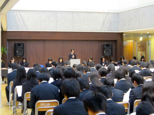 また、新生徒会長・副会長の任命により組閣された平成24年度の生徒会役員が紹介されました。