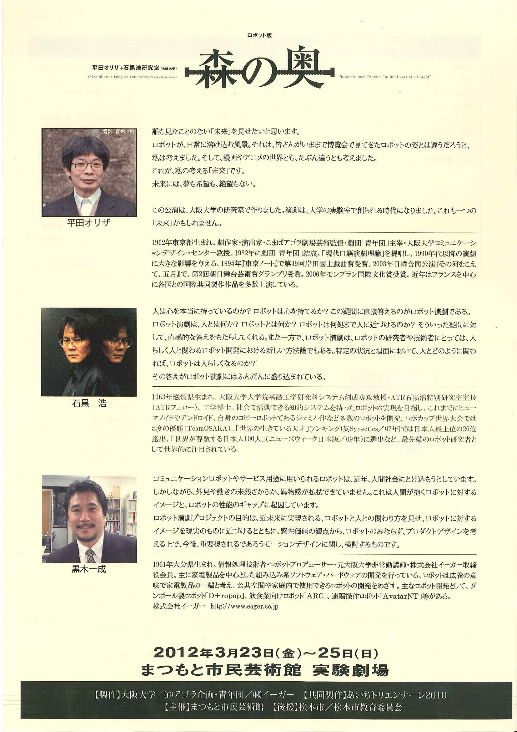 3月23日(金)に、まつもと市民芸術館においてロボット演劇「森の奥」を鑑賞しました。