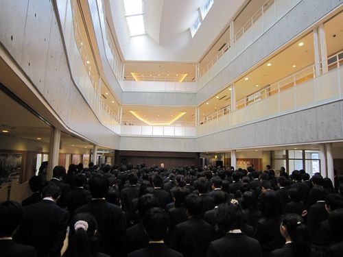 小宮山校長は、開校記念日の説明をするとともに、「もう一度『建学の精神』について思いを巡らせてほしい」と生徒にメッセージを送りました。