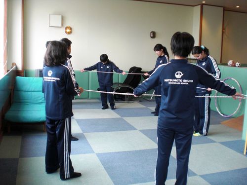 1日目の昼食後は、体を動かしながらチームビルディングのプログラム。