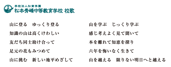 新時代にふさわしい校歌だと感じた。/従来の校歌の固定観念を打ち破った良い校歌だと思います。/学校の理念にあった歌詞で良いと思います。/校歌にありがちなフレーズや曲ではなく、特徴があってよい。/人として生きる指針のようなものが、平易な言葉とやさしいメロディーで心にしみました。/「山を越える 限りない明日へと越える」の部分がジーンと胸を打ちました。/とてもきれいなメロディーで、素晴らしいと思いました。信州の自然の美しさと雄大さが歌われていて、よい校歌ですね。/歌詞に共感します。まさに我が子にこれから学んで成長していってほしいフレーズが詰まっています。/ゆったりとした曲調で、大きな声で歌いやすいと思う。/子供たちが過ごす6年間の中核となる思いが表わされていて素晴らしい詩だと感じました。/平易な言葉で、ストレートな内容の校歌に驚きました。子供達が歌いながら自分に当てはめる事ができる、そんな校歌だと思います。/覚えやすく、いやされるようなメロディーでした。 など