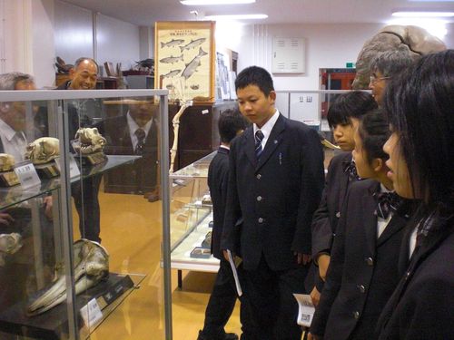 当館には、信州大学の前身である旧制松本高等学校や松本女子師範学校などで教材として使われていた標本や資料をはじめ、非常に多くの資料が展示されており、秀峰生たちも興味津々のようすでした。