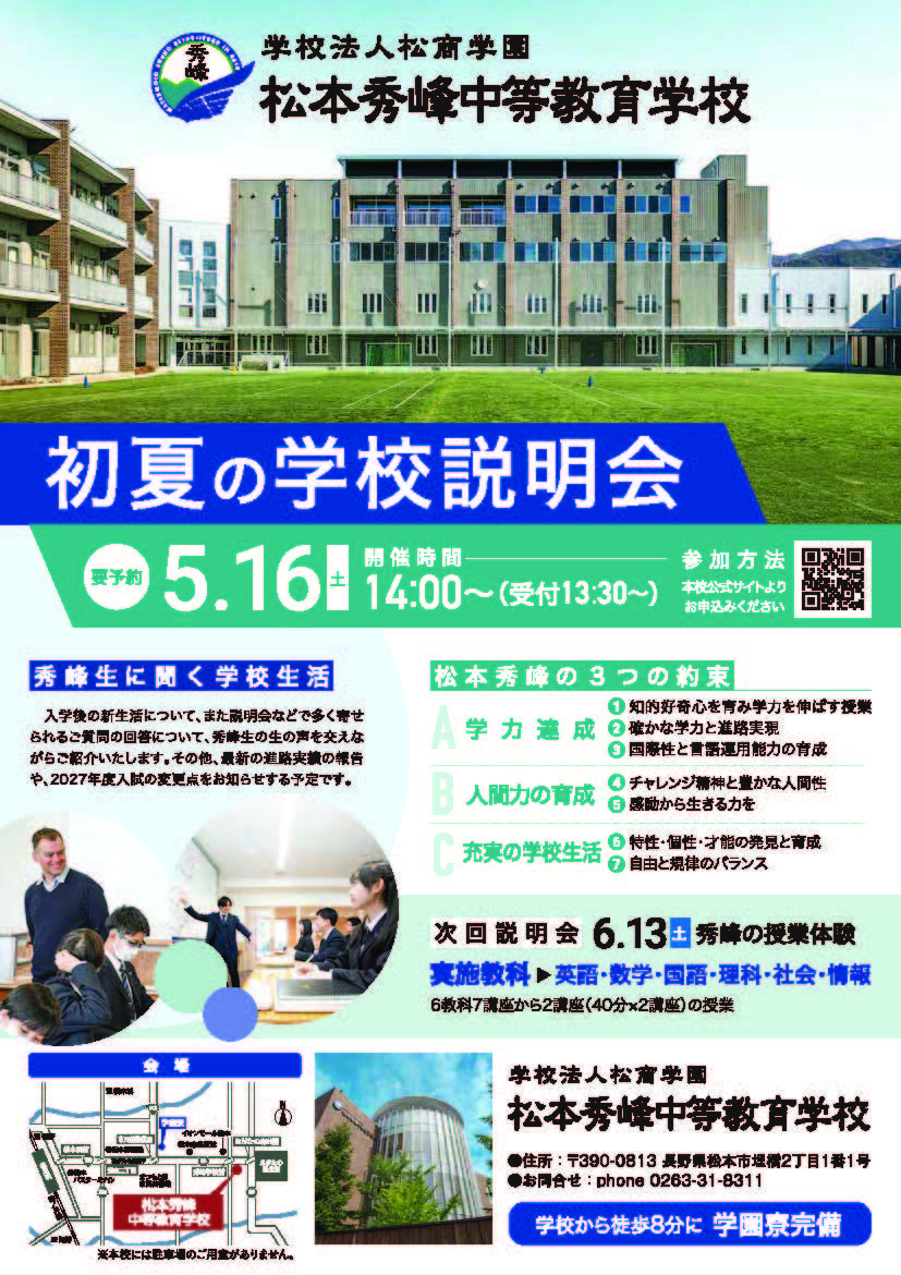 5月16日(土)初夏の学校説明会ご案内